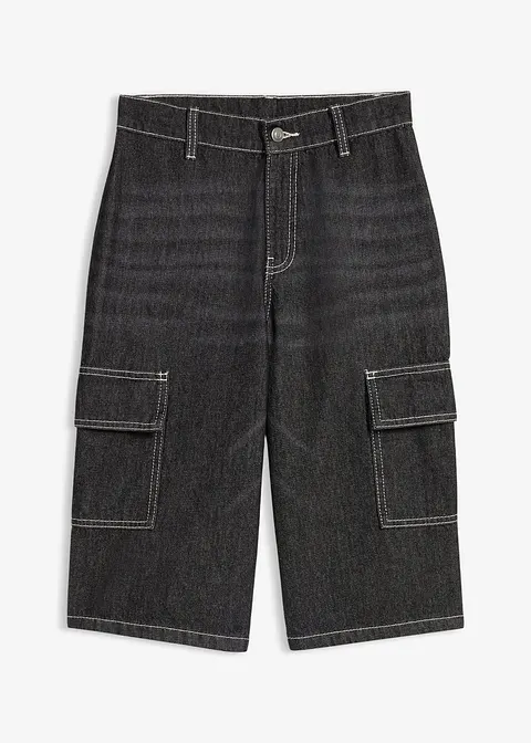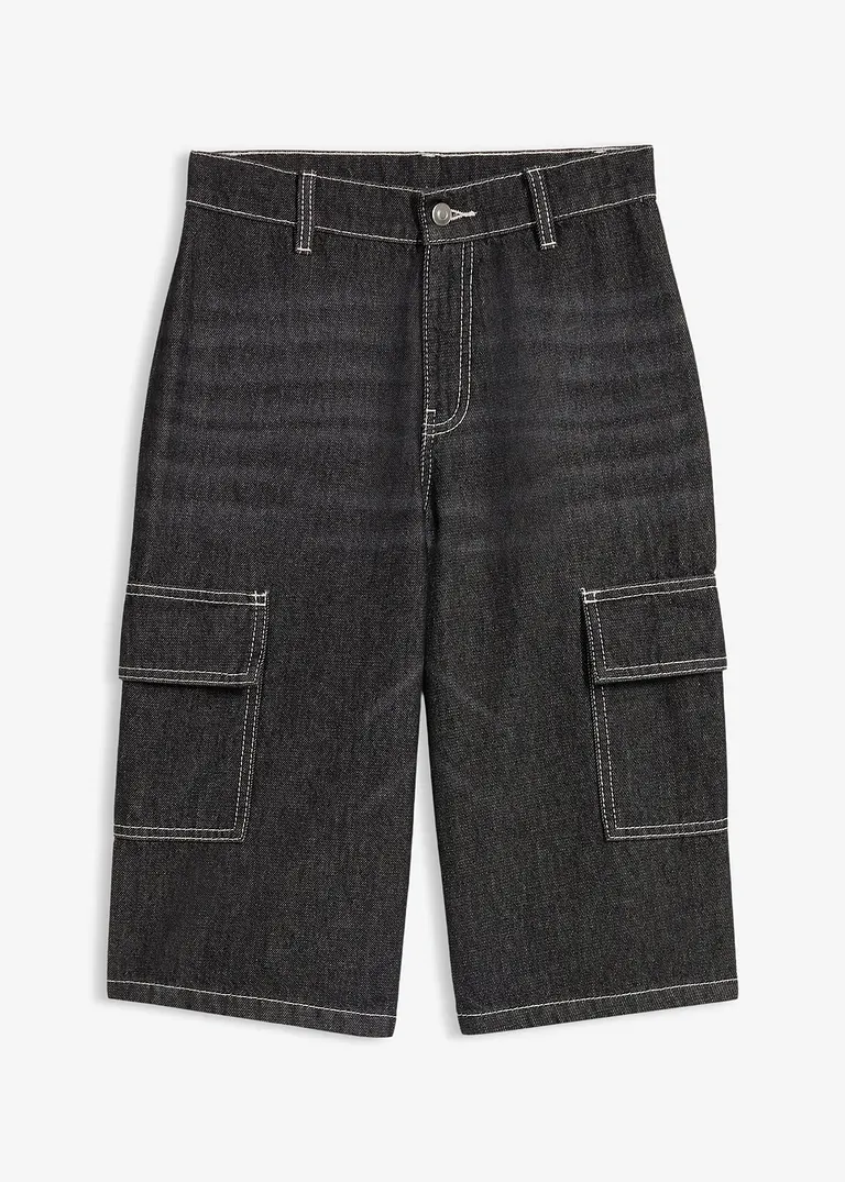 Loose-Fit Jeans-Longbermuda mit Kontrastnähten