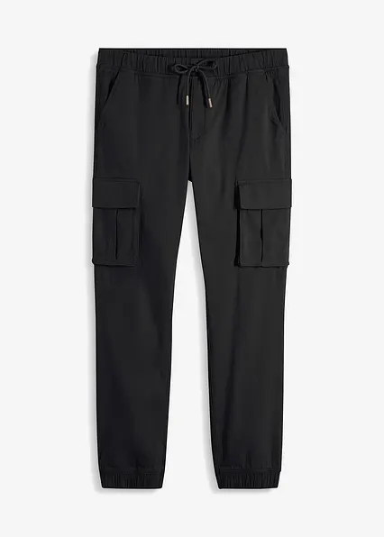Regular Fit Schlupf-Cargohose, Straight in schwarz im Look von vorne (Totalaufnahme) - bonprix