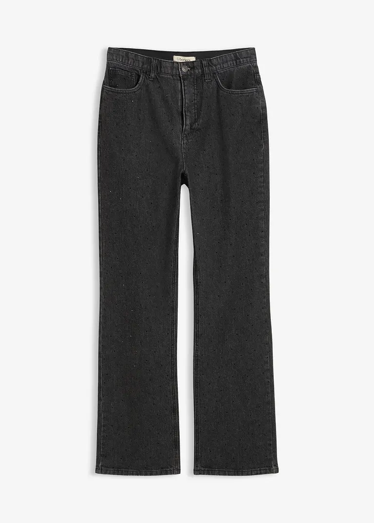 Loose Straight-Jeans High Waist, Bequembund mit Strass