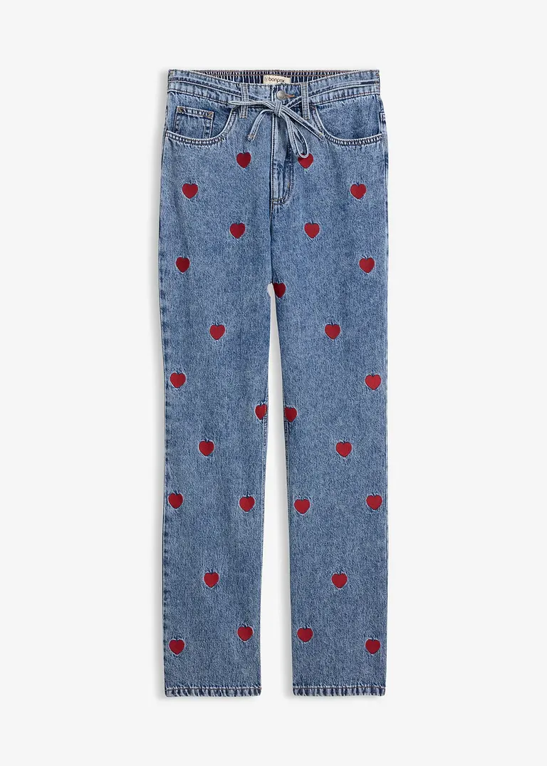 Loose Straight-Jeans High Waist mit Herz-Stickerei