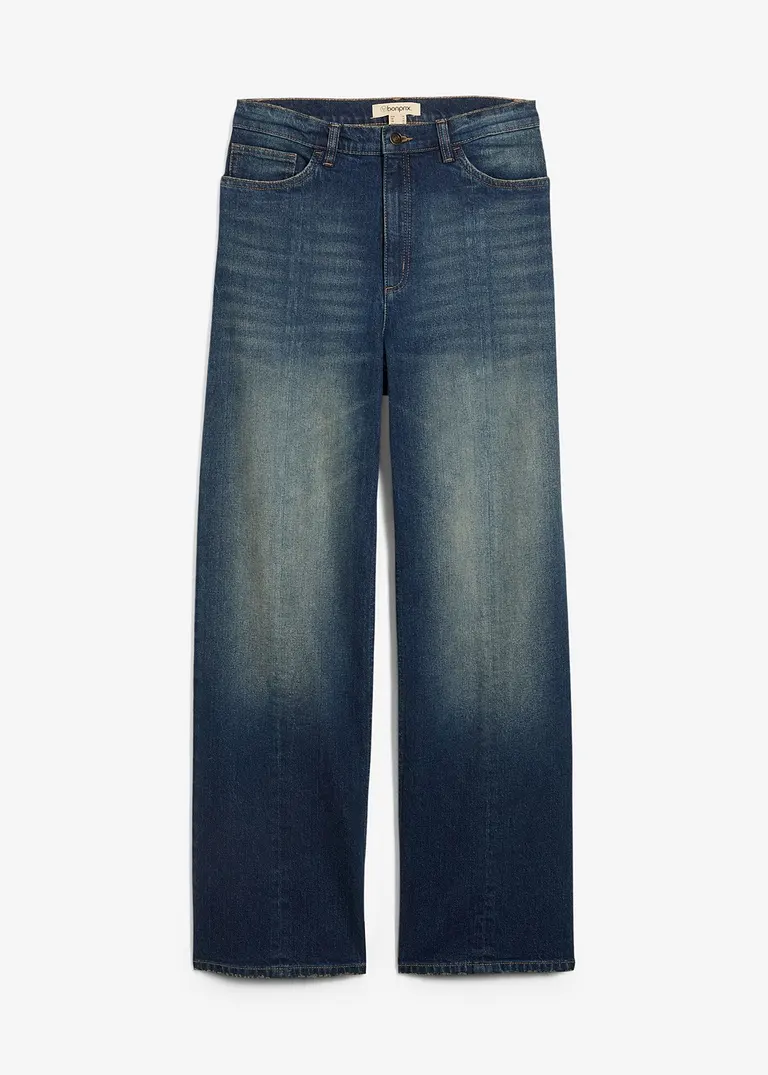 Gerade 5-Pocket-Jeans aus einem festen Baumwolldenim, der sich zunächst etwas steif anfühlt und durch häufiges Tragen weicher und lockerer wird. Hohe Bundhöhe mit Zip Fly und Knopf. Lange Länge, dass am Fuß ein leichter Satcking-Effekt entsteht. Diese Jeans hat durch das ausgewaschene Finish einen modischen Used-Effekt erhalten. Eine leichte Farbabgabe beim Tragen und in der Wäsche sind charakteristisch für diese Jeans. Innenbeinlänge in Gr. 42 ca. 78,5cm, maschinenwaschbar.