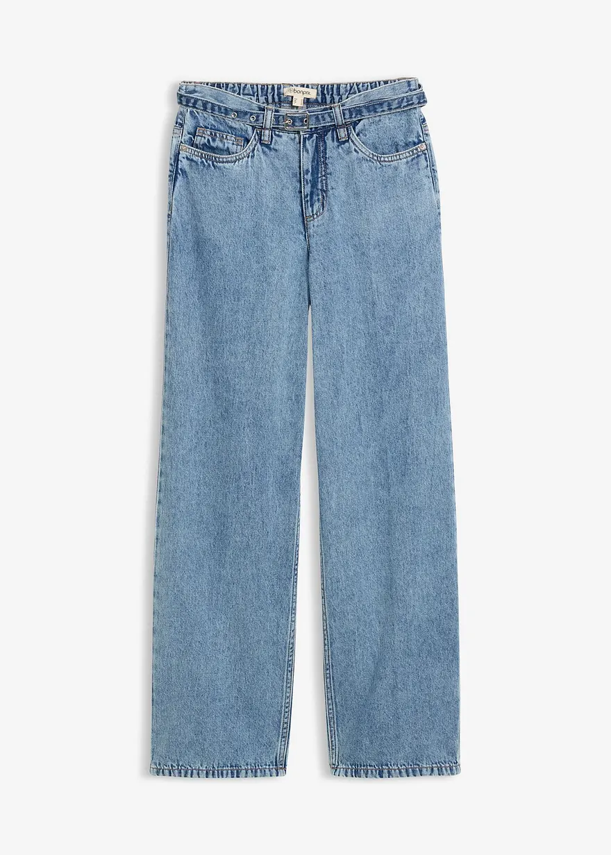 Loose Straight-Jeans Mid Waist, Baumwolle