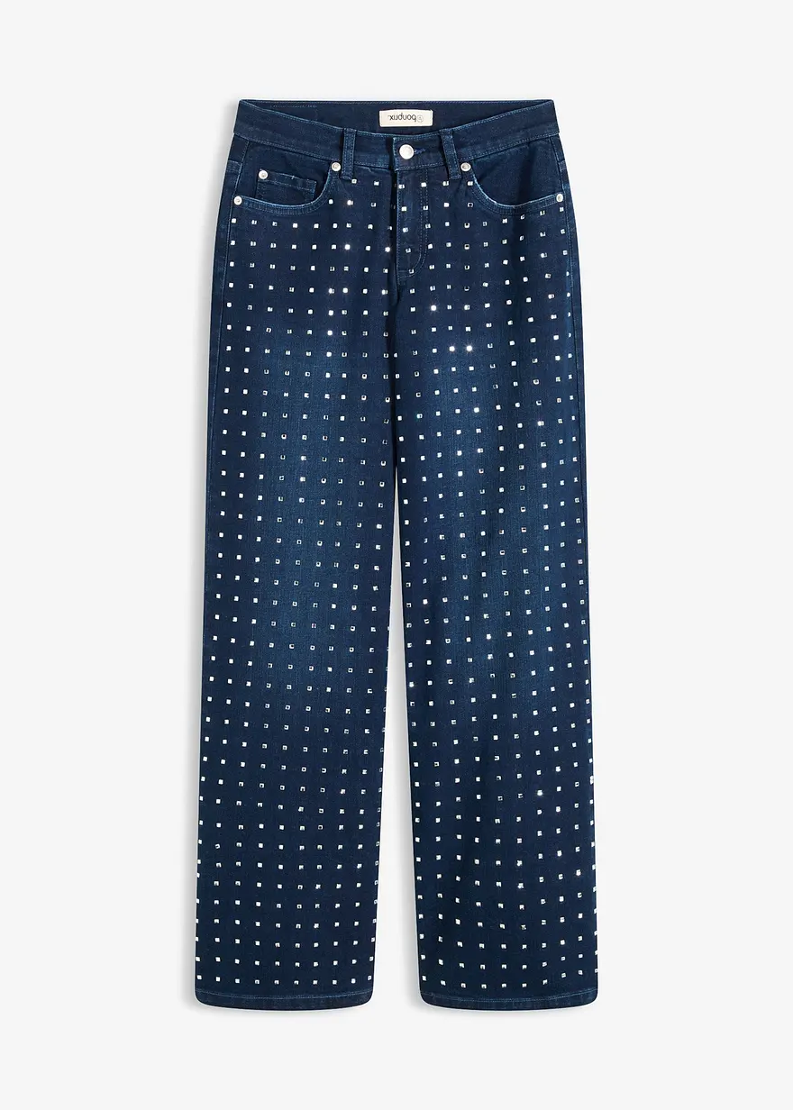 Wide-Leg-Jeans Mid Waist mit Strassapplikation