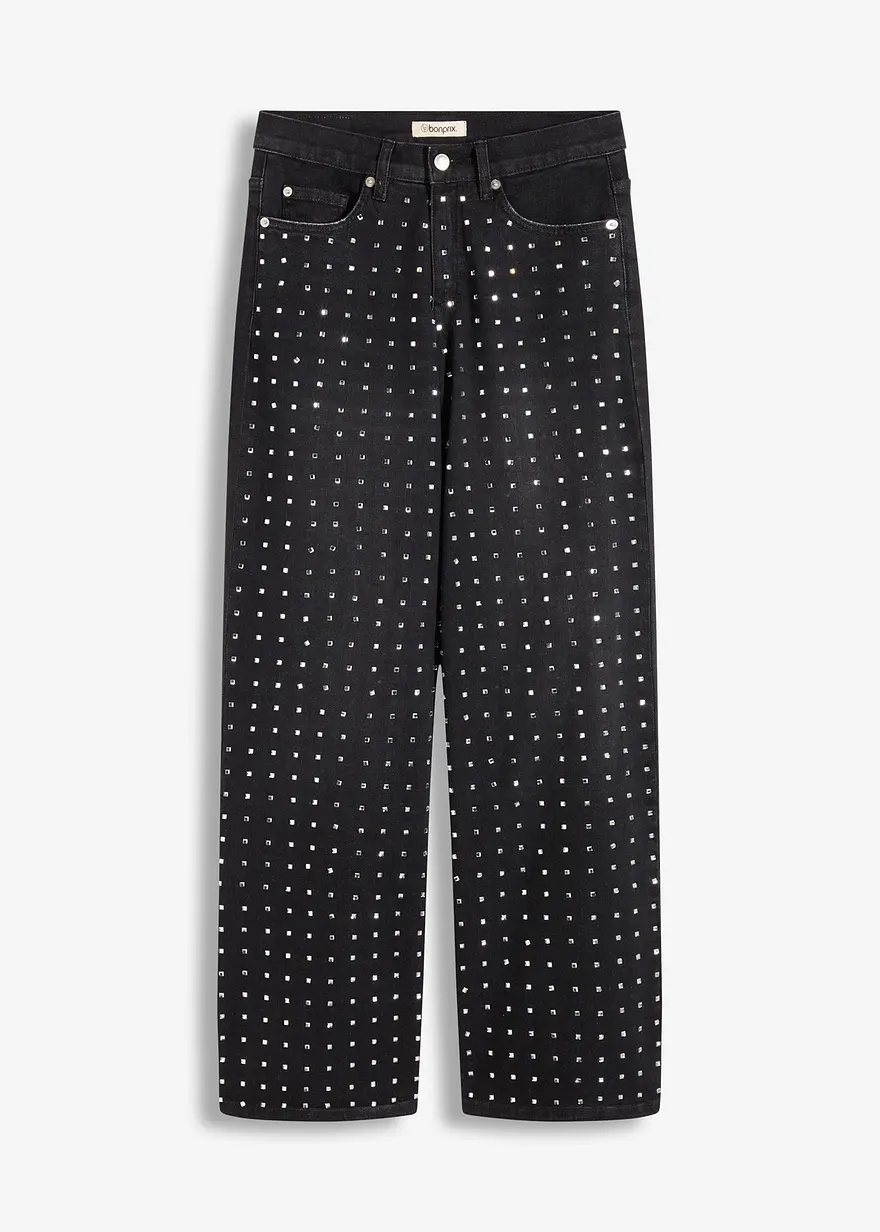 Wide-Leg-Jeans Mid Waist mit Strassapplikation