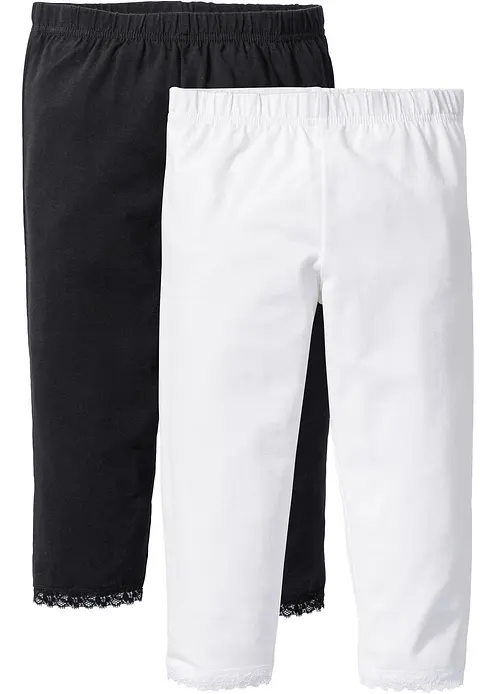 Hübsche Caprileggings im 2er-Pack mit dezenter Spitze am Beinsaum und angenehmen Komfortbund mit Gummizug für eine bequeme Passform.