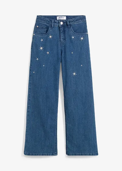 Wide-Leg-Jeans mit Stickerei Mid Waist