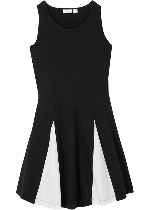 Dieses schöne Kleid mit kontrastfarbenen Einsätzen im Rockteil überzeugt durch sein schlichtes und elegantes Design. Die breiten Träger und die Bio-Baumwolle machen das Kleid zu einem bequemen Allrounder.