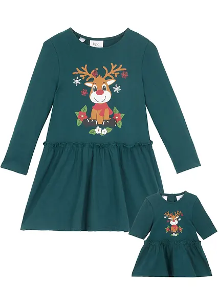 Süßes Kleid für Mädchen mit zusätzlichem Puppenkleid mit weihnachtlichem Motiv