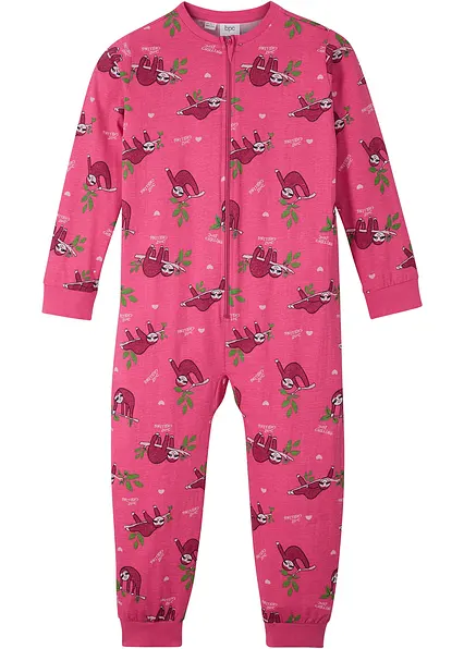 Bunter Schlaf-Overall mit coolem Faultier-Print. Der Halsauschnitt und die Säume sind für die Extra-Bequemlichkeit mit einem weichen Gummibund ausgestattet. Auf der Vorderseite befindet sich ein farblich passender Reißverschluss mit Kinnschutz für ein einfaches Hineinschlüpfen.