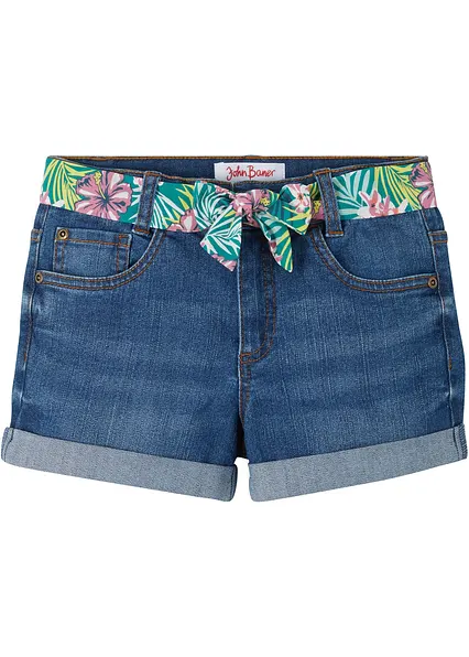 Tolle Stretch-Jeans-Shorts mit floralem Bindegürtel