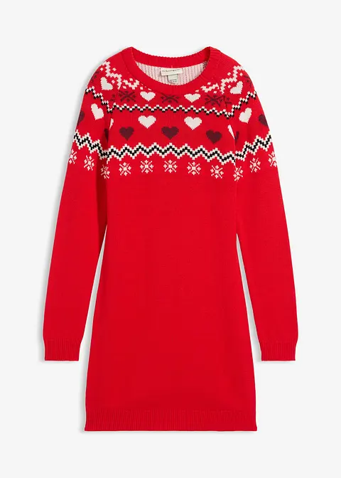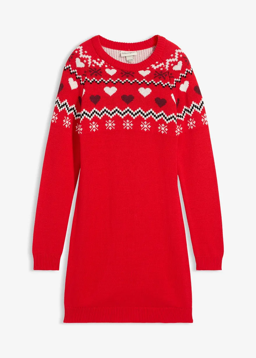 Schönes Mädchen Strickkleid mit Norwegermuster