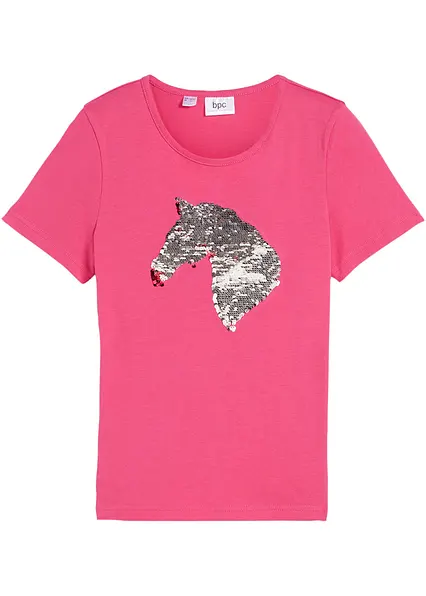 Süßes Mädchen T-Shirt mit Rundhalsausschnitt und Wendepailletten-Pferd