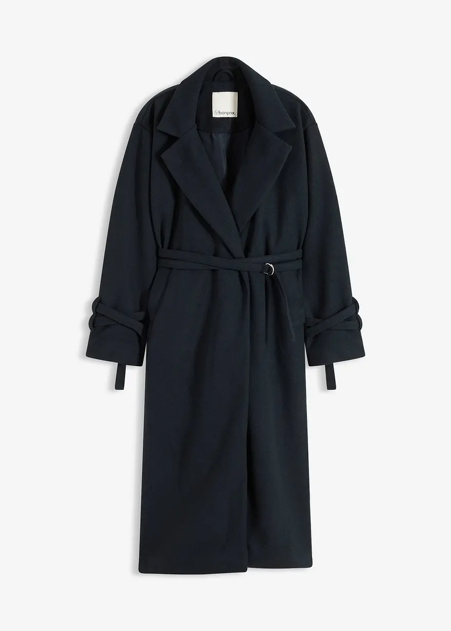 Oversized Mantel mit Bindegürtel und zweifacher Riegel an den Ärmeln
