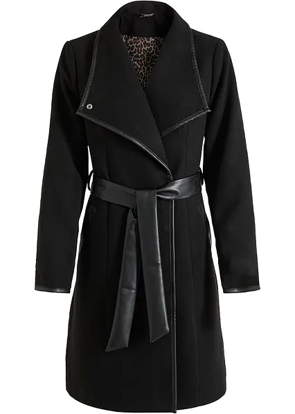 Modischer Mantel mit Lederimitat-Details. Innen ist der Mantel mit einem tollem Leo-Print bedruckt..