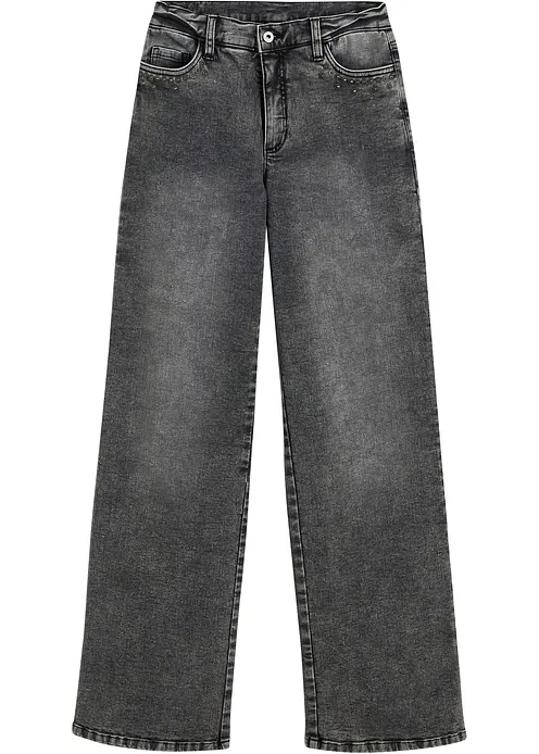 Wide-Leg-Jeans, High Waist mit Nietenbesatz