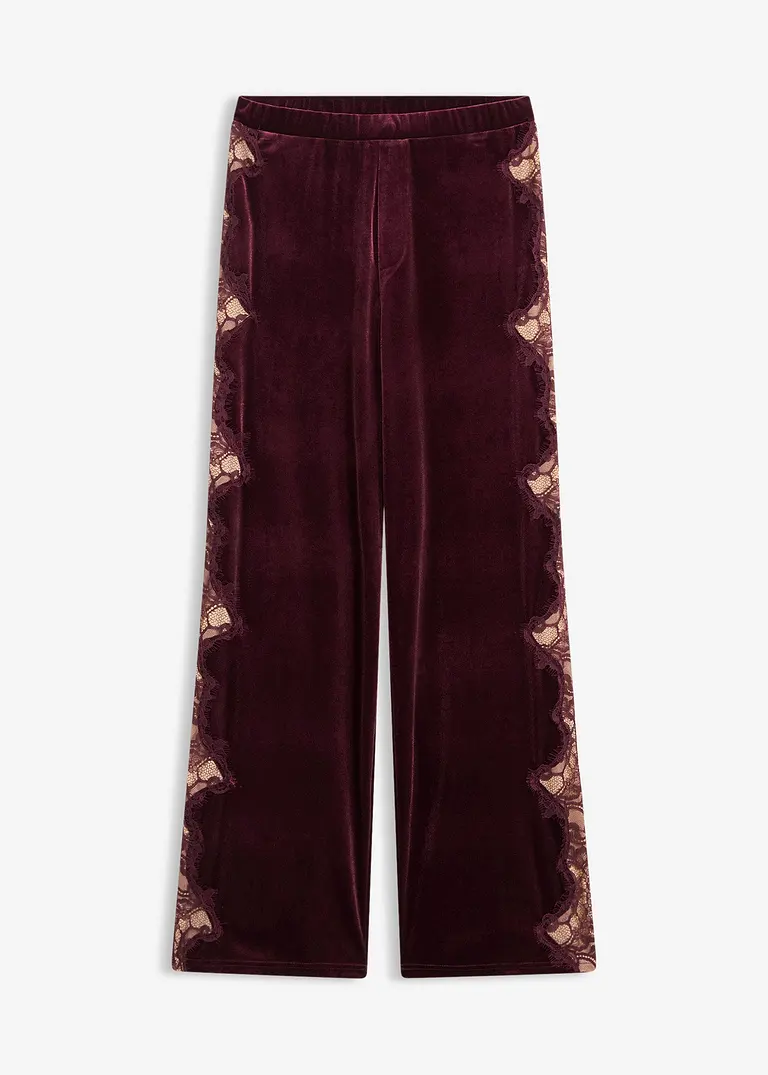 Marlenehose aus softem Samt mit Spitzeneinsatz