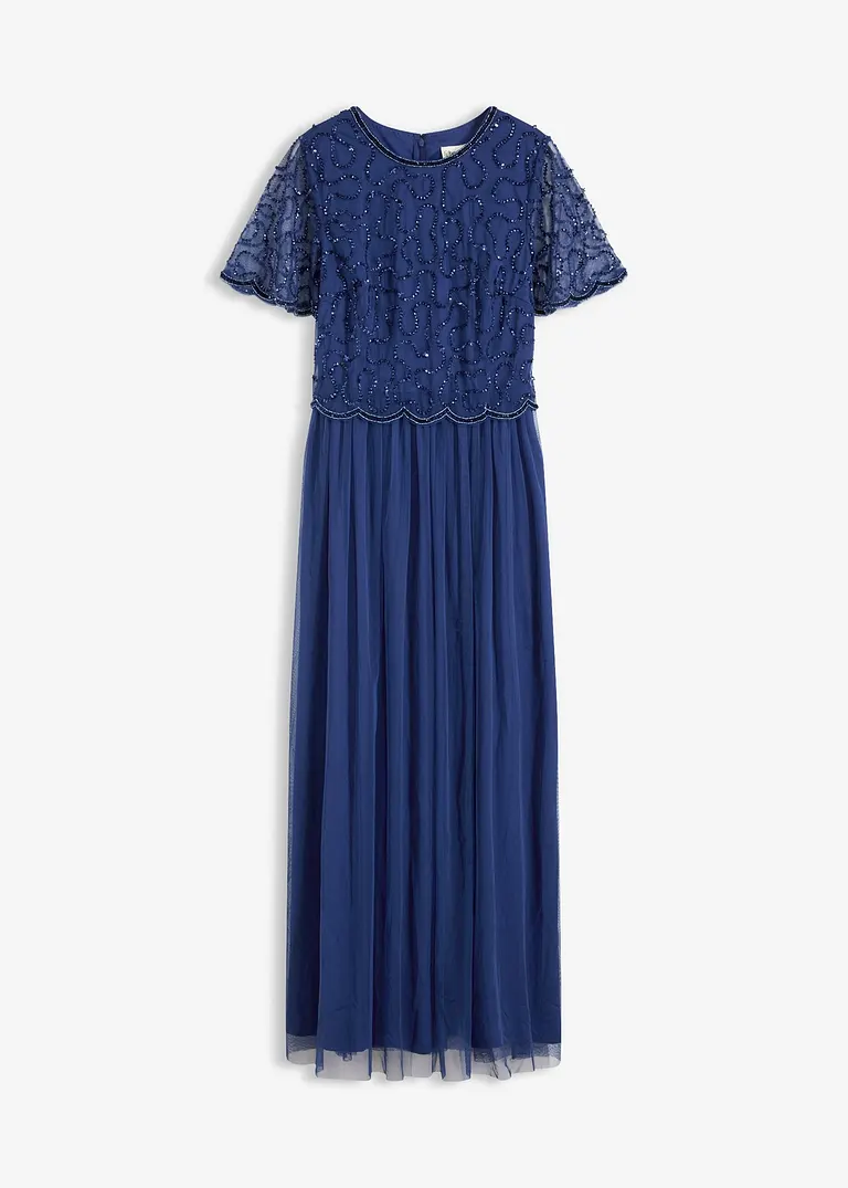 Maxikleid aus feinem Tüll mit Paillettenstickerei