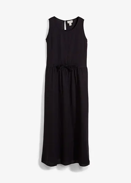 Maxikleid aus leichtem Leinen-Viskose-Mix in schwarz im Look (Totalaufnahme) - bonprix