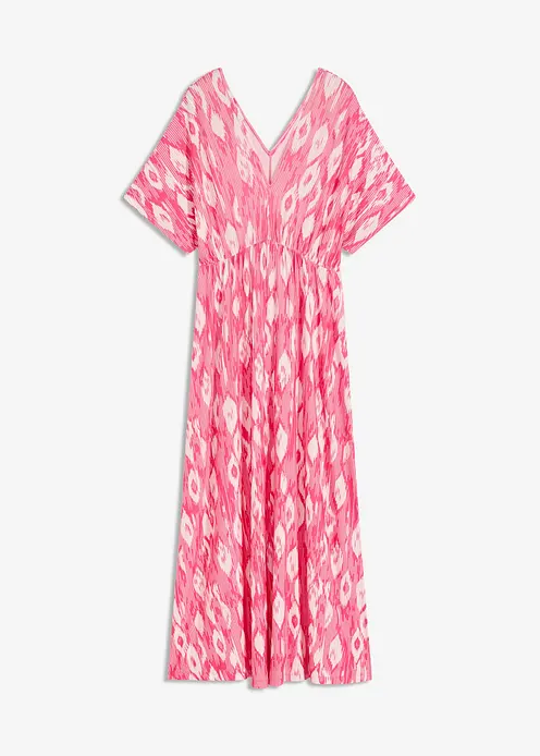 modisch bedrucktes Jerseykleid in Maxilänge mit weit geschnittenen Ärmeln und tiefem V-Ausschnitt vorne