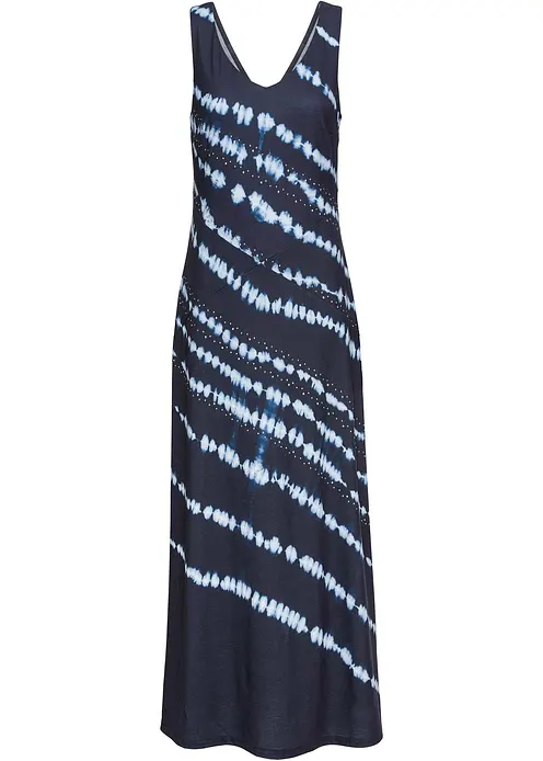 Tief ausgeschnittenes Maxikleid mit Batik-Druck und Schmucksteinverzierung