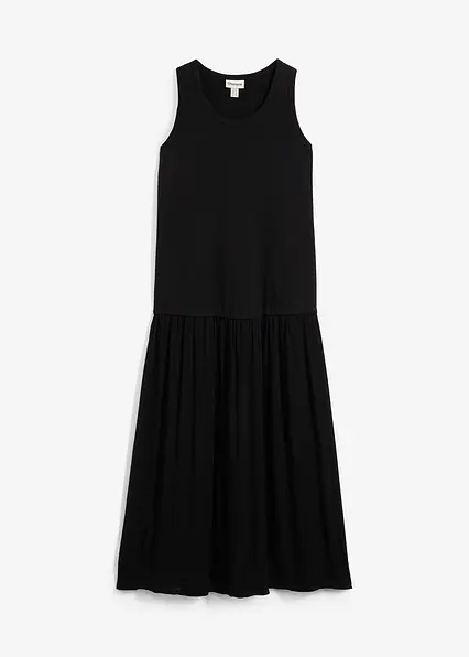 Kleid mit längerem Tanktop-Oberteil und Rock im Materialmix
