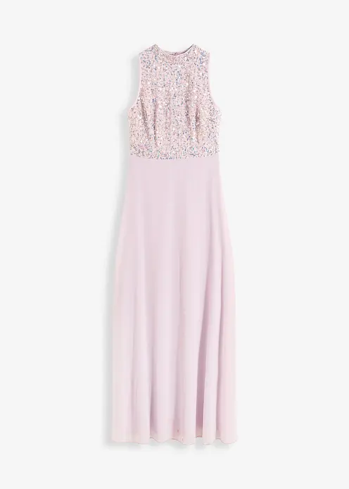 Modern und feminin: Abendkleid mit Stehkragen und Paillettenstickerei im Oberteil