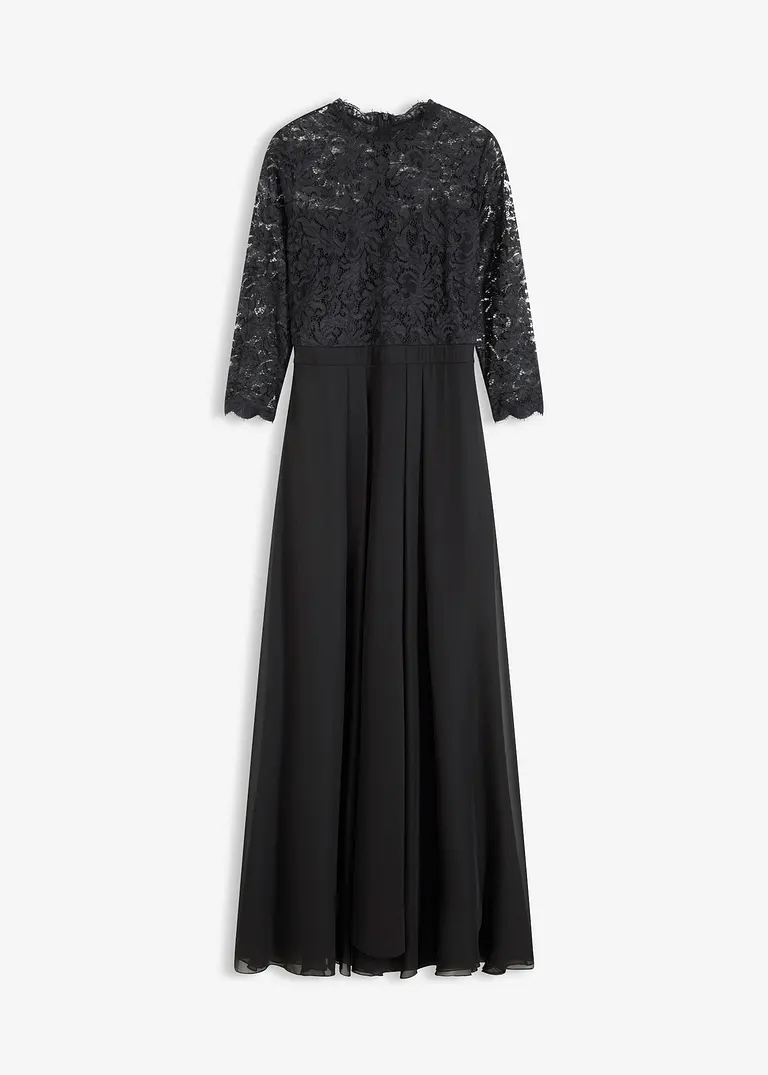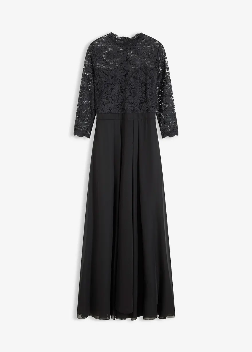 Bezauberndes Abendkleid mit Spitze im Oberteil und einem Rock aus strukturiertem Crepe sowie einem überlappendem Rock aus feinem Chiffon.