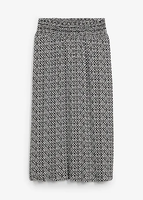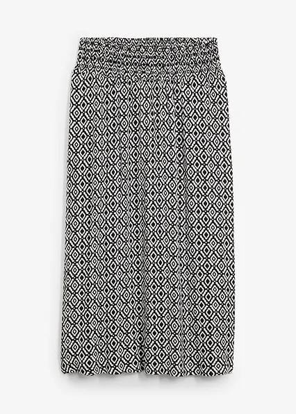 Maxirock aus leicht strukturiertem Viskose-Material. Mit seitlichen Eingriffstaschen und Smokbund.