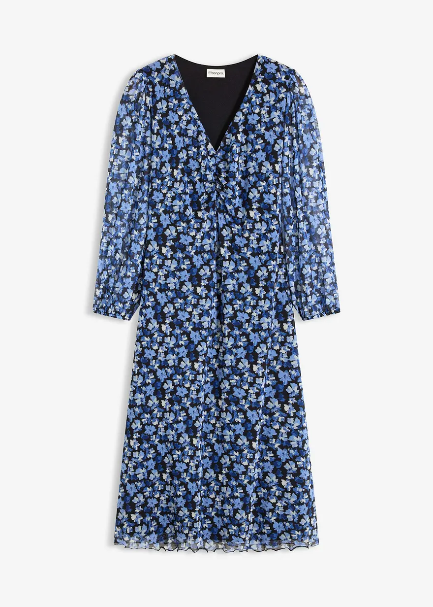 Feminines Mesh-Midikleid mit Raffung vorne
