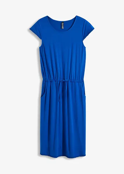 Tailliertes Midi-Jerseykleid, knieumspielend, mit Rundhalsausschnitt und kurzem Arm