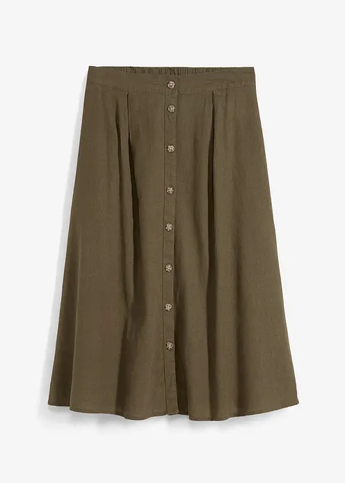 Locker fallender Rock mit Knopfleiste und hinteren elastischem Bund. Die Knöpfe können Farbabweichungen durch die Hornoptik aufweisen.
