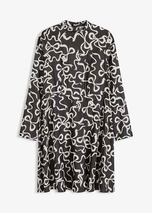 Fließendes Kleid aus Satin mit Stehkragen