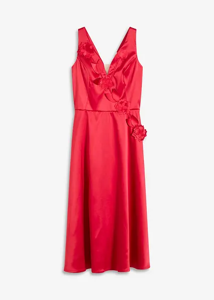 Midikleid aus glänzendem Satin mit Blumen-Applikation