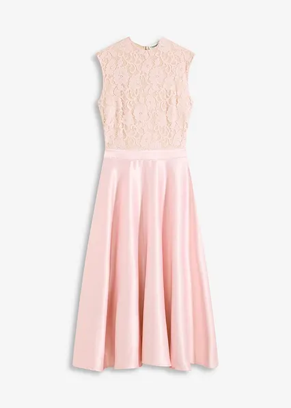 Midikleid aus glänzendem Satin mit Spitze
