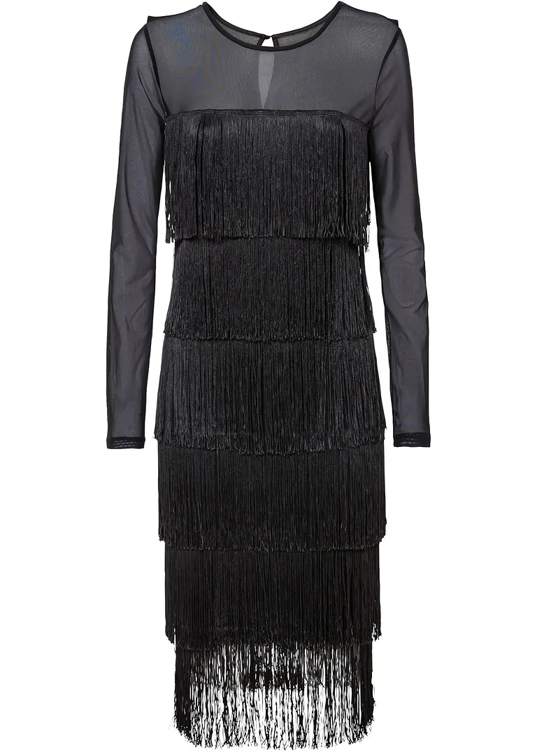 Midikleid aus softem Mesh mit Fransen