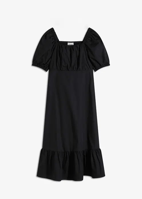 feminines Midikleid aus reiner Bio-Baumwolle mit Puffärmeln und gerafftem Oberteil