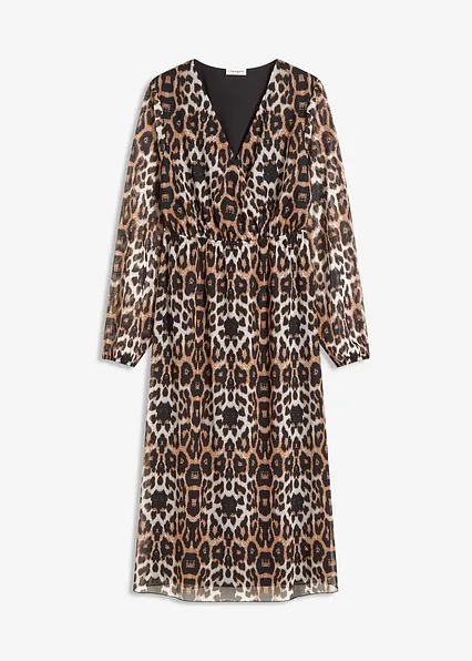 modisch bedrucktes Midikleid aus softem Mesh mit etwas weiter geschnittenen Ärmeln