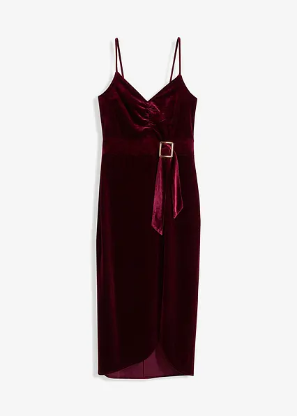 Modern und feminin: Midikleid aus softem Samt mit Spaghetti-Trägern und metallischer Schnalle an der Taille