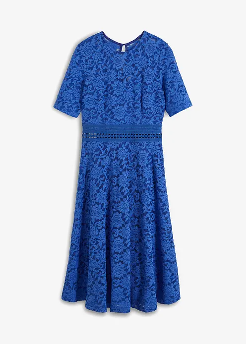 Romantisch und feminin: Midikleid aus Spitze mit Häkeleinsatz in der Taille
