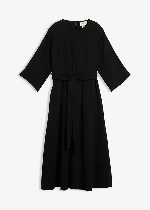 Musselin-Kleid mit Rundhalsausschnitt und Schlitz am Rückenausschnitt