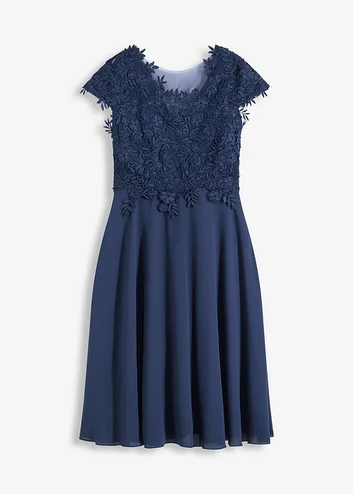 Romantisch und feminin: Cocktailkleid in Midi-Länge aus zartem Tüll mit Spitze
