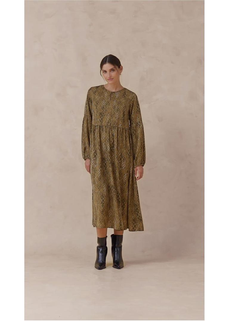 Satinkleid mit Volumenärmel und leichter Taillierung