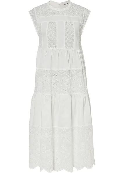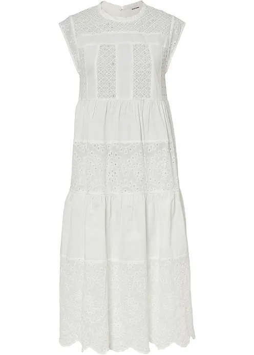 Midikleid mit Spitze in weiß im Look (Totalaufnahme) - bonprix