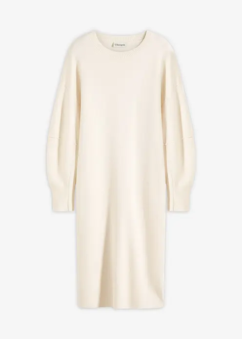 Tailliertes Midi-Strickkleid mit voluminösen Ärmeln in Regular Fit