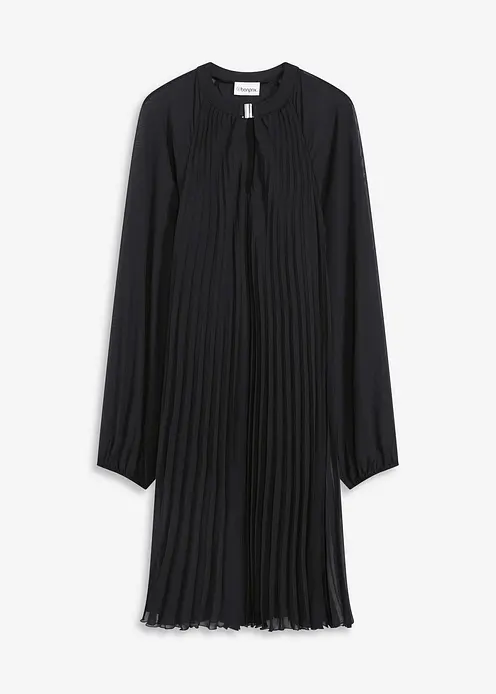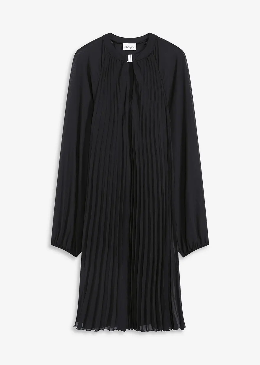 Modern und feminin: Minikleid aus feinem Chiffon mit Plisseé und Ballon-Ärmeln