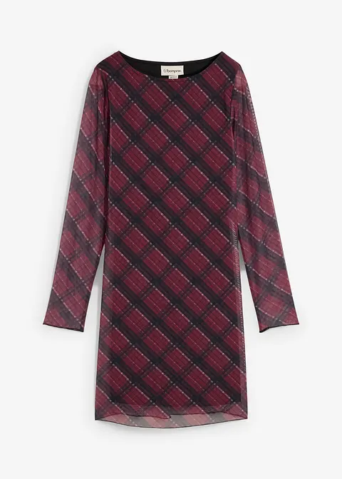 Bedrucktes Mesh-Kleid mit langen Ärmeln