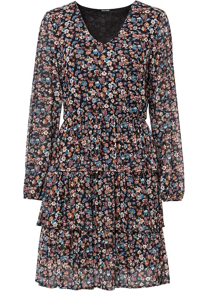 Reizendes Mesh-Kleid mit leicht transparenten Ärmeln und schönem Blumenmuster.