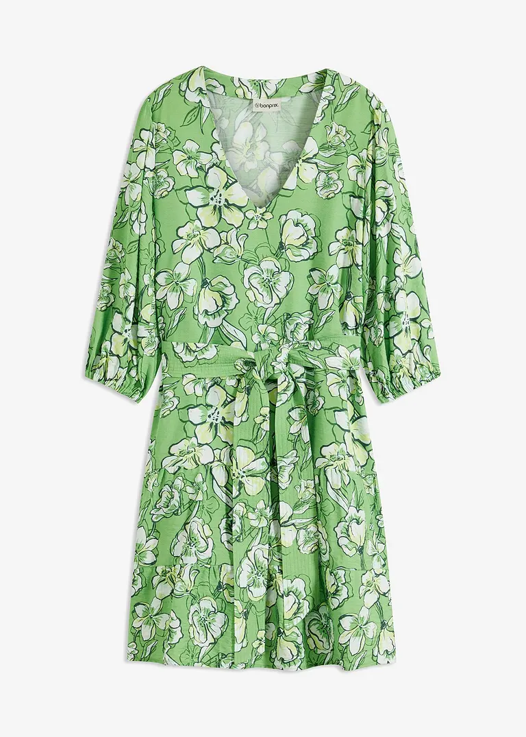 Feminines Kleid mit 3/4 Volumenärmeln und stufigen, ausgestelltem Rockteil