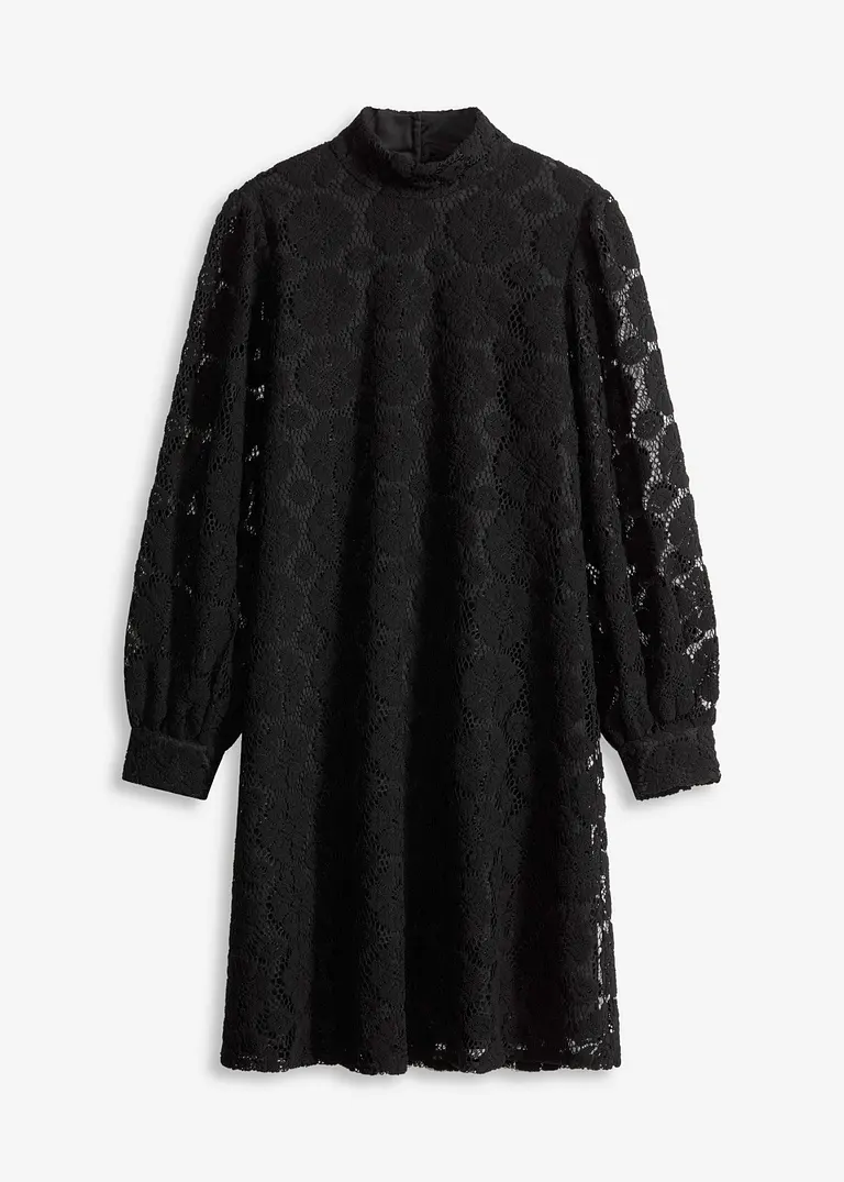 Trendiges, hochgeschlossenes MInikleid aus Spitze und langen Ärmeln