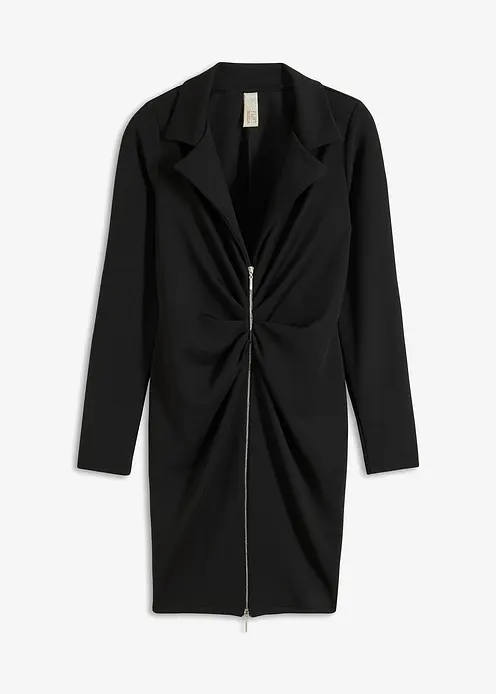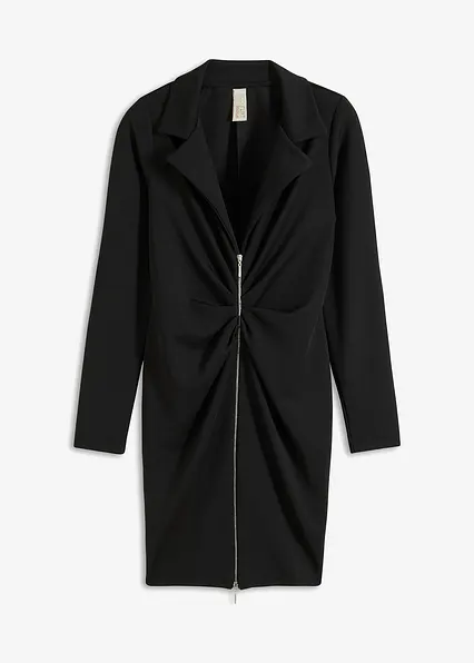 Modern und feminin: Minikleid aus strukturiertem Crepe mit Blazer-Kragen und Raffungen am Reißverschluss auf der Vorderseite